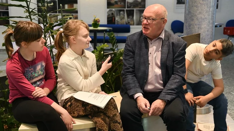 Interview mit der Filmgruppe und Beitrag zum Filmprojekt: "Die Blaue Kugel wird zum Filmstar"