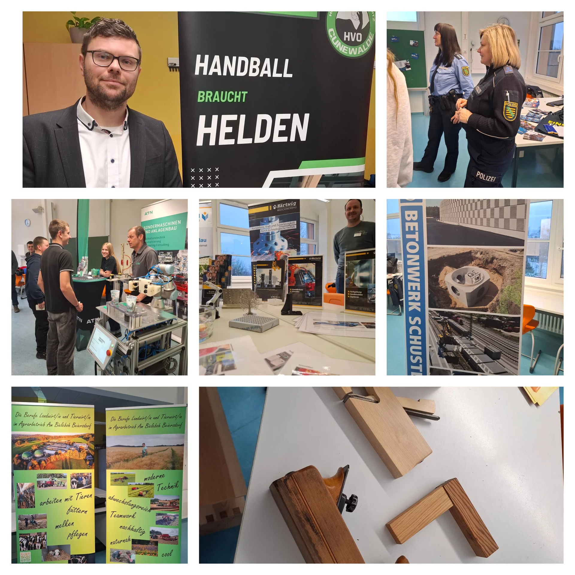 Ein besonderes Highlight war der Berufemarkt mit zahlreichen regionalen Unternehmen. Das Betonwerk Schuster und Härtwig Maschinenbau aus Cunewalde, die Tischlerei und Fensterbau Graf aus Schönberg, der Agrarbetrieb Matthias Ludwig aus Beiersdorf, ATN Oppach, das ÜAZ Bautzen sowie die Polizeidirektion Bautzen stellten Ausbildungs- und Berufsmöglichkeiten vor und boten praktische Einblicke in ihre Arbeitsbereiche.