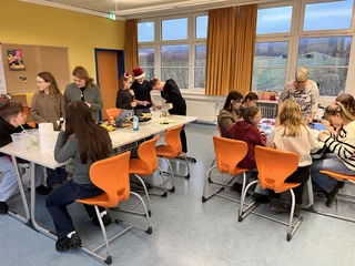 Am letzten Schultag des Jahres 2025, dem Freitag, den 19. Dezember, fand an unserer Oberschule erstmals ein neues Weihnachtsprojekt statt, das gemeinsam von Schülerinnen und Schülern, Lehrkräften, der Schulassistenz und unserer Schulsozialarbeiterin gestaltet wurde. Jede Klassenstufe organisierte zusammen mit ihrer Klassenleiterin oder ihrem Klassenleiter eine eigene Mitmach-Station, die für alle geöffnet war und zum Ausprobieren einlud.