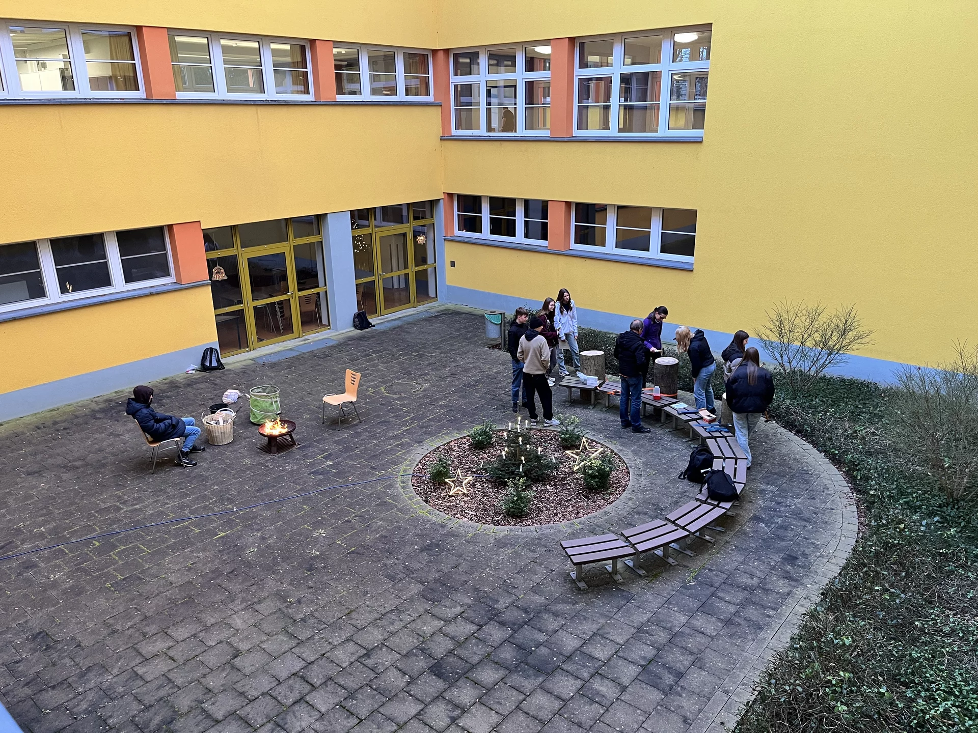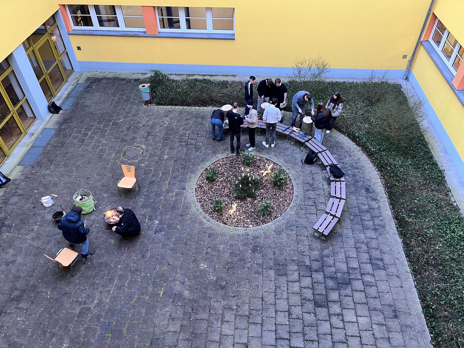 Für ein gemütliches Ambiente sorgte ein Lagerfeuer im Innenhof, und auch für das leibliche Wohl war bestens gesorgt. Die Vielfalt der angebotenen Stationen zeigte eindrucksvoll, wie kreativ unsere Schulgemeinschaft ist. Unter anderem konnten die Teilnehmenden folgende Angebote entdecken: